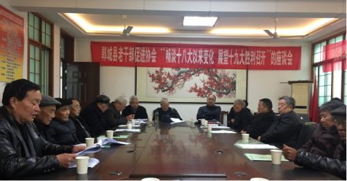 2017年3月24日,鄲城縣老干部促進(jìn)協(xié)會(huì)“暢談十八大以來(lái)變化 展望十九大勝利召開”座談會(huì)在鄲城縣老干部活動(dòng)中心成功召開。本次會(huì)議由鄲城縣老干部促進(jìn)協(xié)會(huì)秘書長(zhǎng)吳金德主持,鄲城縣委常委組織部長(zhǎng)侯磊、老干部局長(zhǎng)徐明堂等近50名老干部參與此次座談。會(huì)議一開始,老干部促進(jìn)協(xié)會(huì)會(huì)長(zhǎng)趙永祥宣布了領(lǐng)導(dǎo)班子的補(bǔ)充和聘請(qǐng)顧問的通知,副會(huì)長(zhǎng)王新民宣讀周口市老干部5號(hào)文件,常務(wù)副會(huì)長(zhǎng)崔允忠做了2016年工作回顧及2017年工作計(jì)劃。