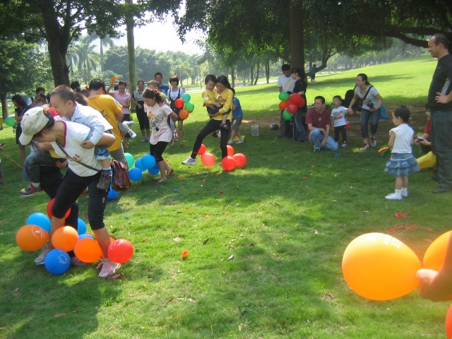 游戲規(guī)則:每個家庭由一名家長和一名孩子參加,由工作人員給參與的每個家庭發(fā)三個氣球和一根細(xì)繩,請家長將氣球吹大綁在自己的腳腕,身背孩子。聽到主持人的口令游戲開始,家長就背著寶寶踩其他家庭的氣球,在互相踩氣球的同時,首先要注意安全,其次要保護(hù)自己的氣球,還要將別的家庭的氣球踩破,氣球被踩爆即被淘汰,比一比誰是冠軍。