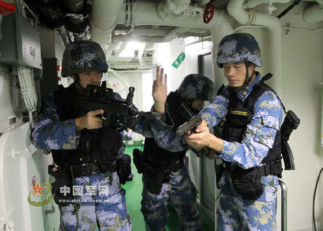 海軍第十一批護航編隊赴亞丁灣、索馬里海域執(zhí)行護航任務(wù)以來,針對海況復(fù)雜多變,海盜活動更趨隱蔽、猖獗、頻繁等嚴(yán)峻特點,編隊指揮所科學(xué)籌劃護航行動,研究掌握海盜活動的特點規(guī)律,合理安排值更執(zhí)勤,加強巡邏警戒,狠抓各項制度落實,搞好預(yù)想預(yù)測,完善多套方案預(yù)案,著力提高快速反應(yīng)能力。在查證、驅(qū)離疑似海盜船只時,確保預(yù)先發(fā)現(xiàn)、快速反應(yīng)、掌握主動,把兩個“百分之百”要求落到實處。圖為3月下旬編隊實施護航行動時的一組場景。