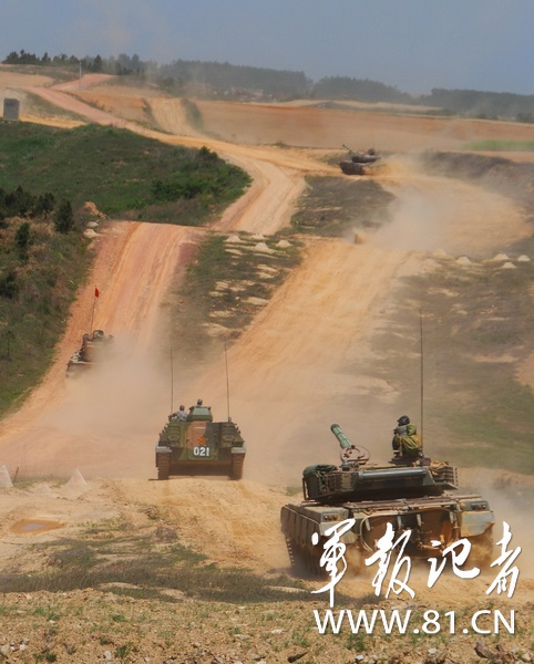 南京軍區(qū)某部把部隊拉到野外生疏地域展開實兵檢驗性演習(xí),錘煉復(fù)雜電磁環(huán)境下部隊遠(yuǎn)程機動、指揮控制、偵察預(yù)警和火力打擊能力。圖為4月下旬,該部坦克梯隊向演習(xí)地域開進。(龐祥川)