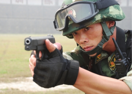 站在記者面前的王永法個(gè)頭中等、皮膚黝黑、體魄健壯。這位來(lái)自河南的80后老兵,乍一看和普通一兵并無(wú)不同。但他身上卻籠罩著一道道光環(huán):囊括了武警四川總隊(duì)近兩年所有軍事比武的冠軍,5次被評(píng)為“軍事訓(xùn)練標(biāo)兵”,榮立二等功1次,三等功4次,榮獲武警部隊(duì)“勇士勛章”,最近作為西南反劫機(jī)作戰(zhàn)隊(duì)的代表人物,被確定為第十五屆中國(guó)武警十大忠誠(chéng)衛(wèi)士候選人……在武警四川總隊(duì)一支隊(duì),他是人人皆知的“瘋子”。