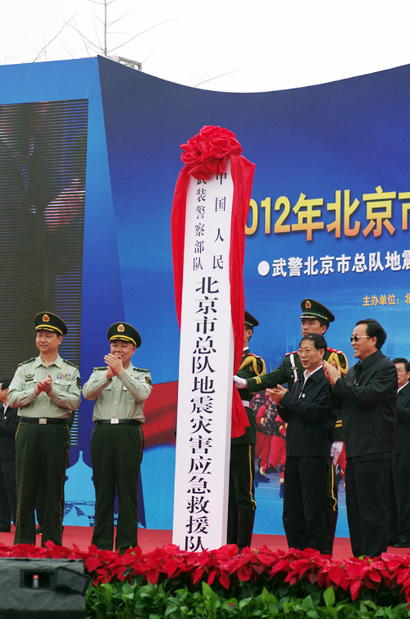《人民武警報》報道(漆錫、邢佩偉)5月12日是我國第四個“防災減災日”。上午,武警北京地震災害應急救援隊成立儀式在京舉行。北京市市長郭金龍,武警部隊政委許耀元、參謀長牛志忠及北京總隊有關領導出席。