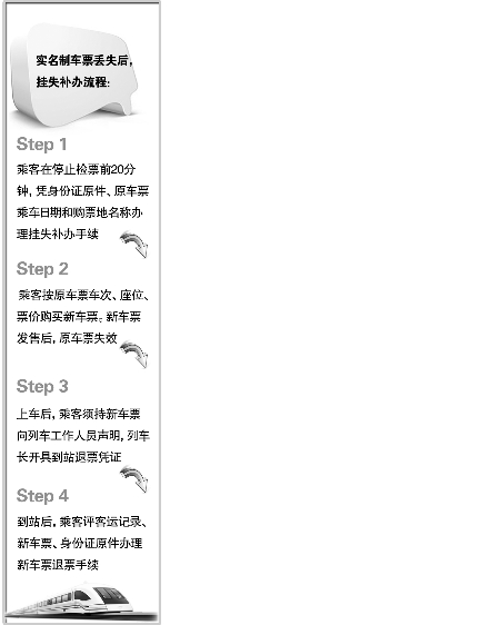 根據(jù)鐵道部發(fā)布的消息,從本月10日起,實(shí)名制車票丟失后可以掛失補(bǔ)辦,但須交2元手續(xù)費(fèi)。