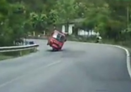 實(shí)拍小三輪轉(zhuǎn)彎漂移撞上小車