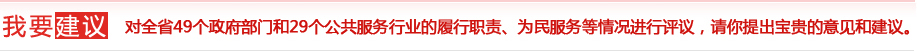 為貫徹落實黨中央、國務院關于加強作風建設的指示精神和省政府關于"兩轉(zhuǎn)兩提"的要求,努力建設服務政府、責任政府、法治政府和廉潔政府,進一步增強公共服務行業(yè)的服務意識,切實加強政風行風建設,省政府糾風辦繼續(xù)在全省各級政府部門和公共服務行業(yè)開展以"樹立優(yōu)良作風,構建和諧中原"為主題的民主評議政風行風活動。河南省人民政府糾風辦委托映象網(wǎng)開通網(wǎng)上評議系統(tǒng),對全省49個政府部門和29個公共服務行業(yè)的履行職責、為民服務等情況進行評議,請你提出寶貴的意見和建議。