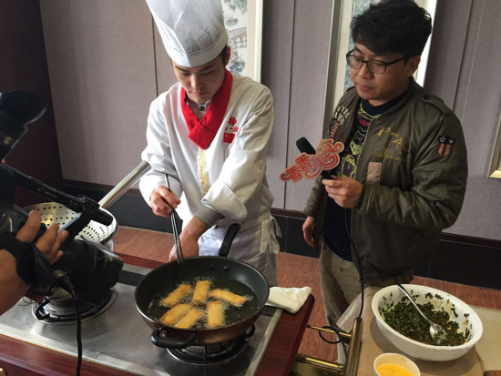 去皮五花肉剁成帶有顆粒感的肉餡,調(diào)好味道,炒熟、晾涼就可以用了。炒餡的時(shí)候師傅還用到了具有濃郁開封特色的調(diào)味料,肉餡炒好后韭菜的加入也是頗為講究的,最后像疊被子一樣將春卷包好,下鍋炸成金黃色就可以了!你看,這酥脆的外皮很誘人對(duì)不對(duì)!